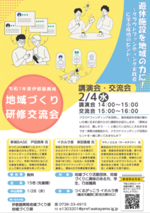 和歌山県伊都振興局からのご依頼で、地域づくり研修交流会にゲストとして登壇します。